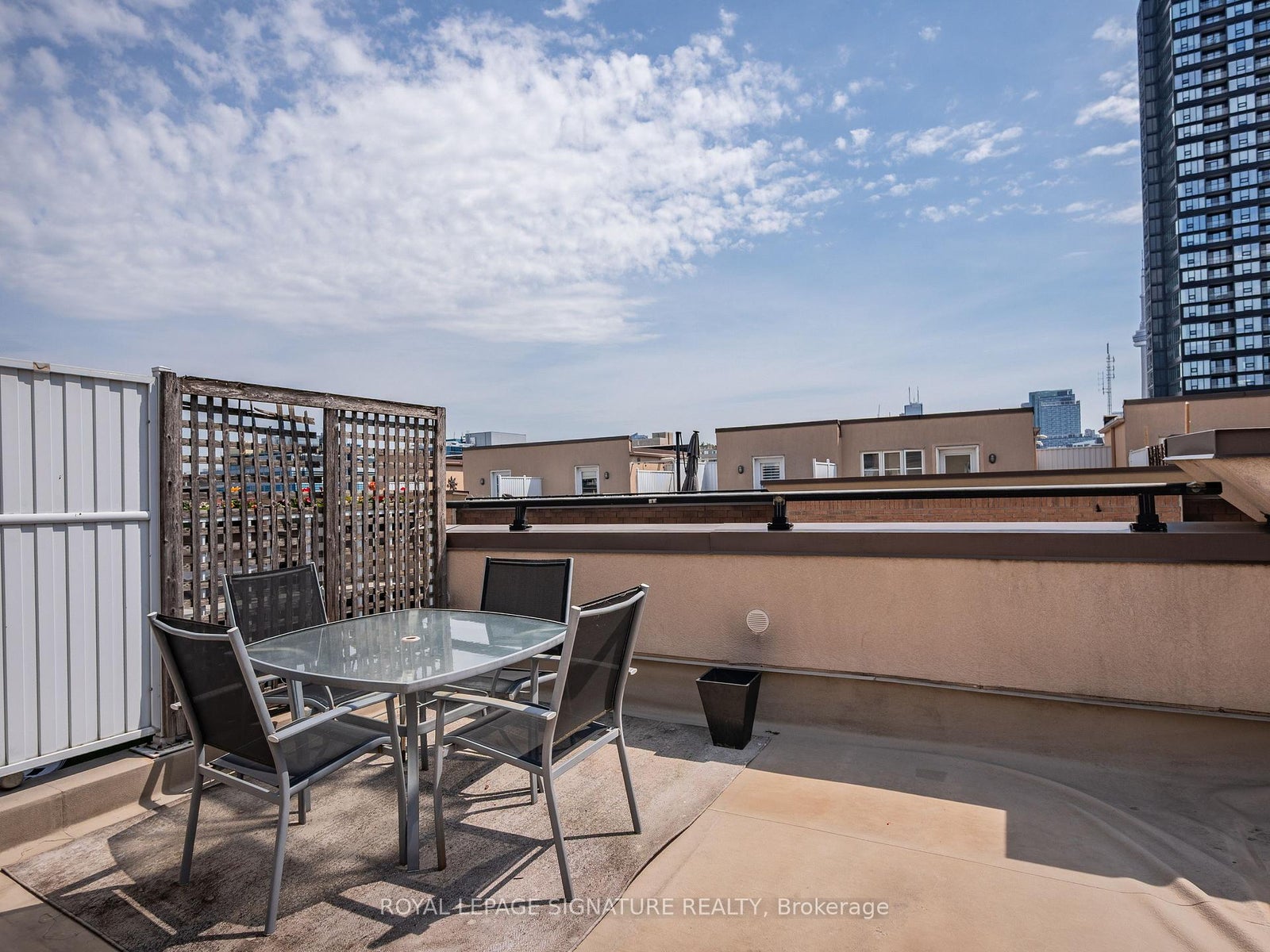 The perfect 180 Square Foot Private Rooftop Terrace with CN Tower Views. The perfect location. This 819 Square Foot, Upper Level Townhouse in Liberty Village is Bright, Airy and Cozy. Spacious 1+Den Layout, Freshly Painted throughout, Updated Kitchen Cabinets and Hardware. New Vinyl Flooring and Lighting Throughout. Extra Large Bedroom. Full Size Appliances. Bedroom Easily Fits a large Bed with Plenty of Space Left Over. The Den has an added closet but can easily be converted to a Work From Home Space or even more Closet Space. A short walk to Altea, one of the best gyms in the city. This is the location you want for the all the concerts and upcoming events. Perfect for Summer and Easy Access to Transit. Street Parking Permit may be available through the city and Parking spots come up for rent in the complex.